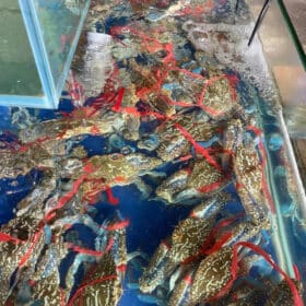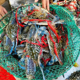 Ghẹ xanh tươi sống – hải sản được yêu thích với phần thịt chắc ngọt, gạch son béo ngậy. Tại Nhà hàng Hải Sản Đảo Phú Quý Bảo Bối, khách chọn ghẹ sống trực tiếp tại bể và thưởng thức ngay với các món hấp, rang muối, rang me hay lẩu ghẹ nóng hổi.