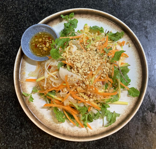 Gỏi nấm kim châm giòn sần sật, hòa quyện rau thơm tươi mát và nước trộn chua ngọt thanh dịu, món khai vị nhẹ nhàng mà “đã miệng”.